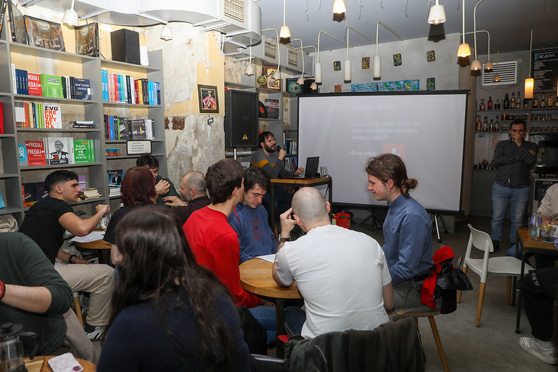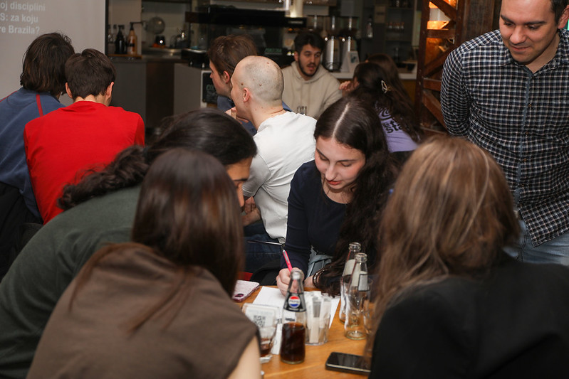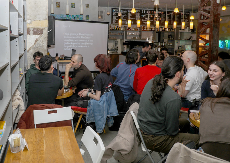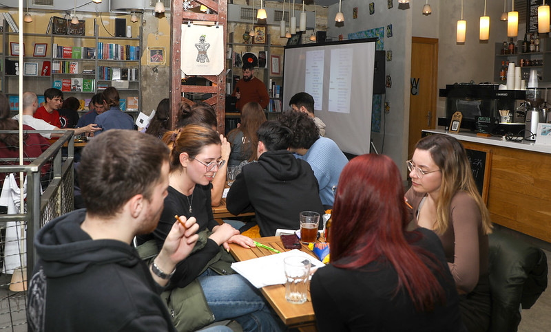 Дана 27. марта, упркос кишном времену, одржан је 8. Паб квиз студената физике у кафе-књижари „Zenit Books“. Лоше време није спречило студенте и професоре да се окупе и уживају у такмичењу и дружењу. Том приликом додељене су награде за освојено прво, друго и треће место, као и посебна награда за област Физика. Квиз су саставили Давид Кнежевић, Петар Мали, Милан Чавић и Соња Гомбар. Део атмосфере са 8. Паб квиза можете видети на приложеним фотографијама.