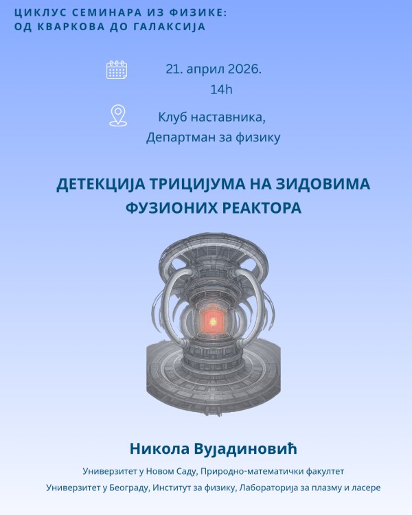 У оквиру циклуса семинара из физике „Од кваркова до галаксија“, у уторак, 21. априла у 14h биће одржано наредно предавање у Клубу наставника (II спрат, ДФ/ДМИ).